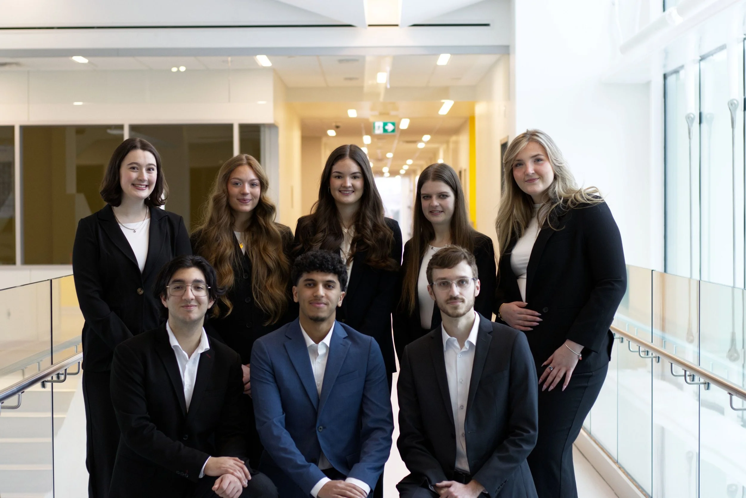 Top row from left to right: Kayley Rideout, Alexa Brown, Sophie Squires, Heather Tough, Hannah Churchill. Bottom row from left to right: Ibo Essam, Elias Ali, Kyle Roberts.